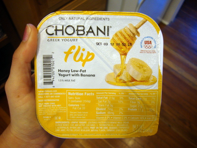 A Honey Low-fat Yogurt with Banana Chobani Flip.