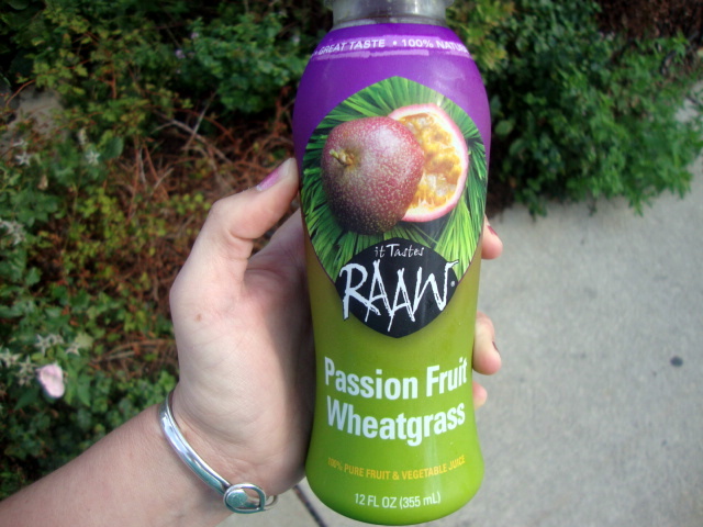 I bought a Raaw Passion Fruit Wheatgrass drink at work.
