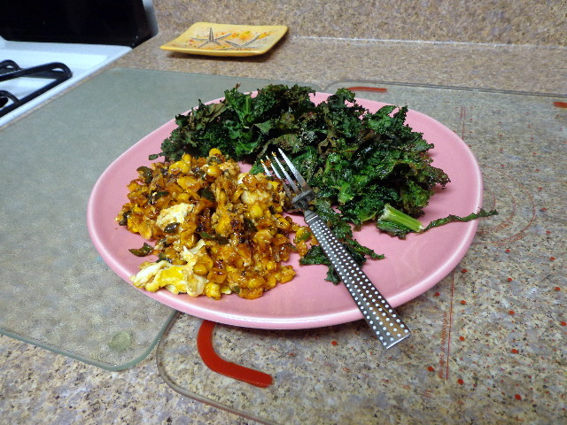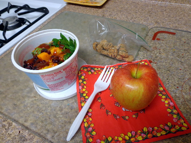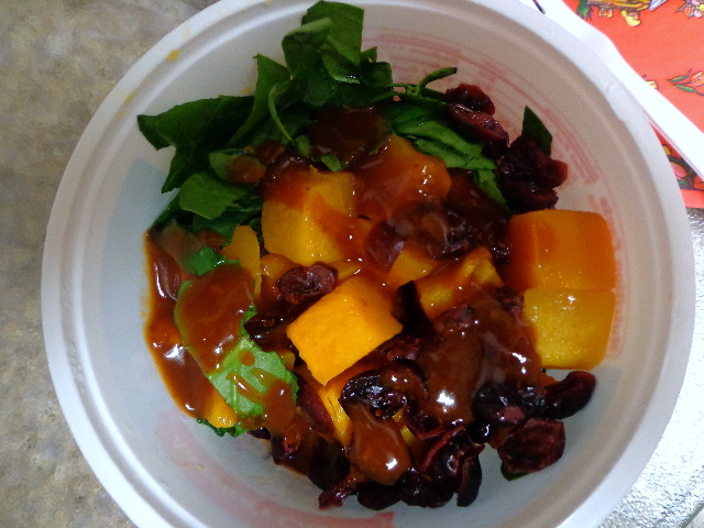 My salad was technically on the bottom, not the side. I topped my greens with mac (Annie’s Shells and White Cheddar, with spinach, mushrooms, and Bela smoked sardines) and then topped my whole bowl with crumbled goat cheese.
