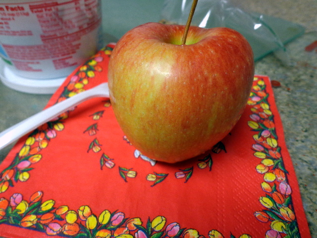 I topped some TJ’s low-fat pumpkin Greek yogurt (3/4 of the container or so; the serving seems oddly large to me) with some of my Simply Sweet Granola and a sprinkle of cinnamon.