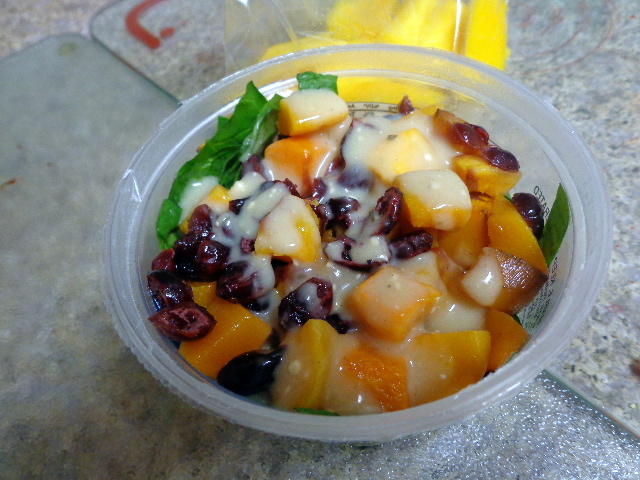 Salads on the side. A romaine blend dressed with a sprinkle of salt and 1 tsp each honey and olive oil.