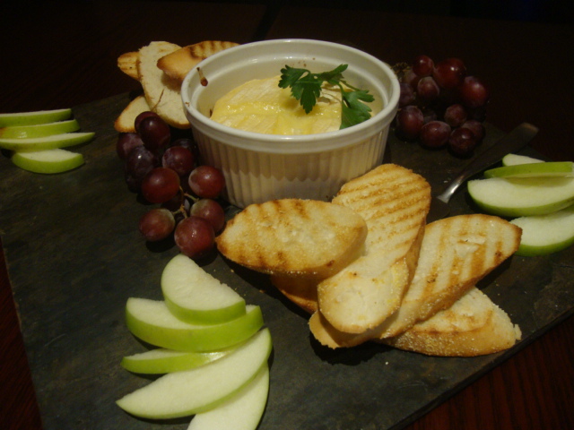We had an amazing meal and are planning on going back next week with my mom. Adam and I split three things to maximize tastes. We started with the Camembert Fondue – Franziskaner infused camembert wheel / crisp apple slices / crusty sesame bread.