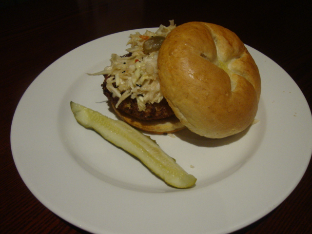 Next we had the special, a Crab cake Sandwich. It was served with vinegary cole slaw and crisp green apples on a brioche bun.