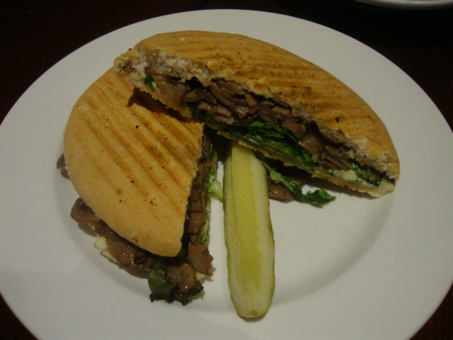 Finally we had the Truffled Wild Mushroom Panini – Haus blend of fresh wild mushrooms / white truffle oil / cippolini onions / fresh arugula / gorgonzola / pressed on foccocia.