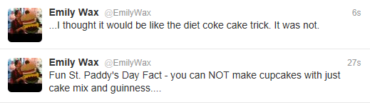 My goal was Guinness Chocolate Cupcakes with Bailey’s Buttercream for a St. Paddy’s Day treat. But I hate chocolate cake and I really hate Bailey’s Irish Cream so it actually wasn’t too big of a loss.