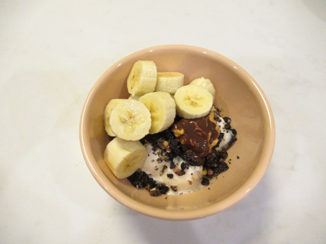 10/10 dessert skyr bowl. Plain skyr, salty peanuts, leftover pecan pie toffee candy, and TWO KINDS of blueberries (Sweetest Batch and Super Jumbo!).