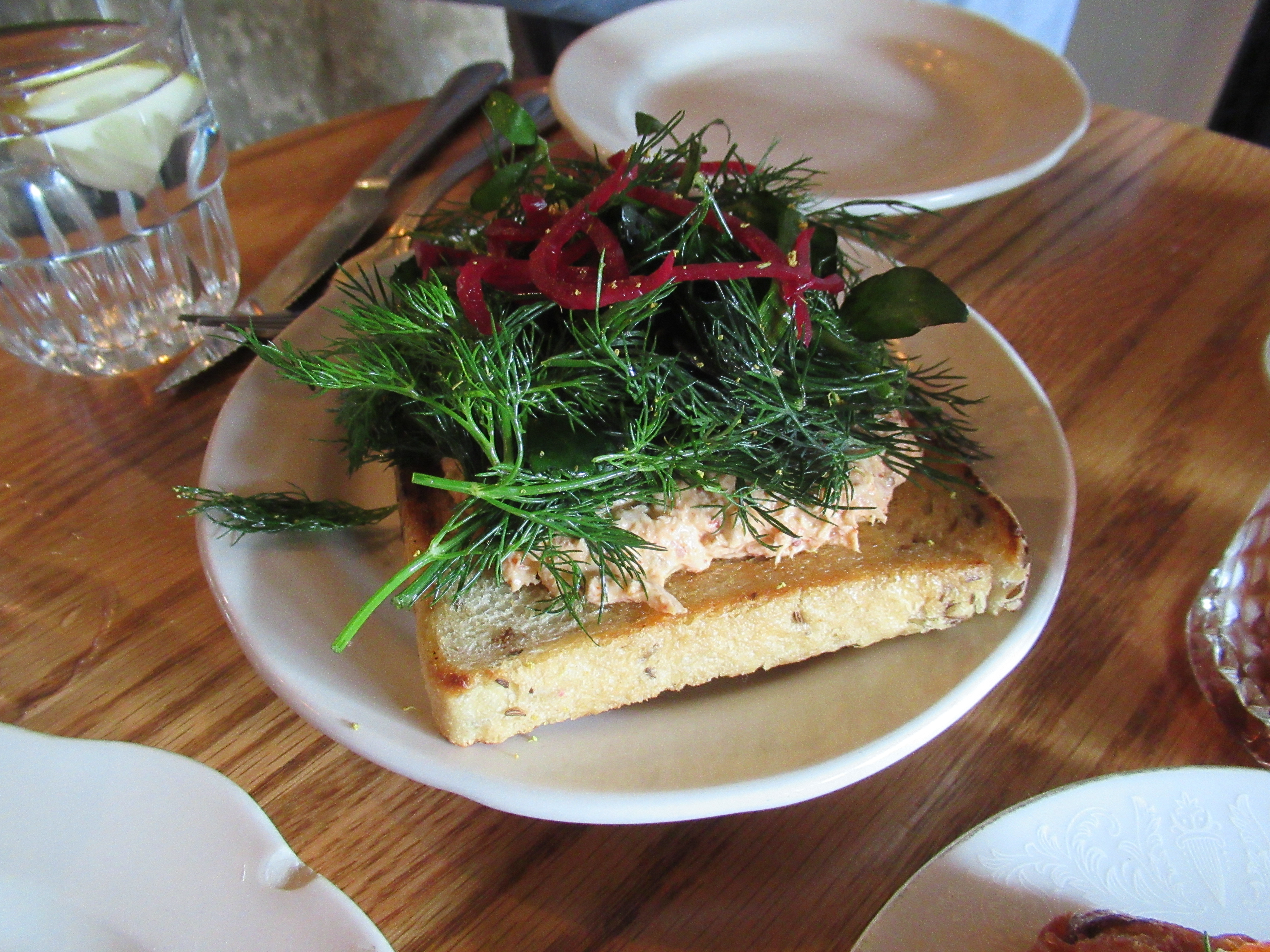 Monday’s dinner was some of our (many) leftovers from wonderful dinners with my parents. We had a fantastic time while they were here! Broccoli rabe, woodfired honeynut squash, and stracciatella cheese from Rolo’s / woodfired pita bread and roast chicken from Sunday in Brooklyn / Pizza, chicken parm, broccoli rabe, and salmon from Il Gufo / also unphotographed tater tots from Sonder.