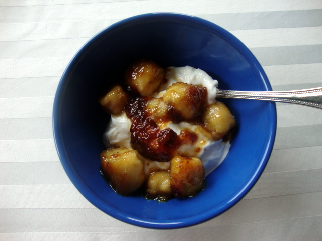 Fried food abounded but I managed to put together a healthy lunch. Chicken pot stickers.