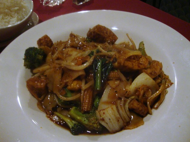 We headed to Taste of Thai on Hertel (an avenue with tons of good-looking restaurants and next to no parking), where we split our regular order – Pad See Eiw with tofu,