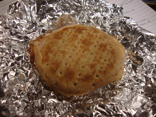 Terrible picture of the yummy pecan pastries a coworker brought it. She cut back on sugar which can leave baked goods overly tough but these ended up tasting like a pastry-scone hybrid.