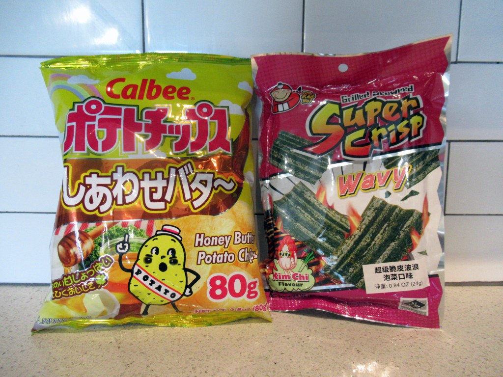 The perfect walking snack from an Asian grocery in Manhattan – spicy tuna onigiri and crab meat inari.