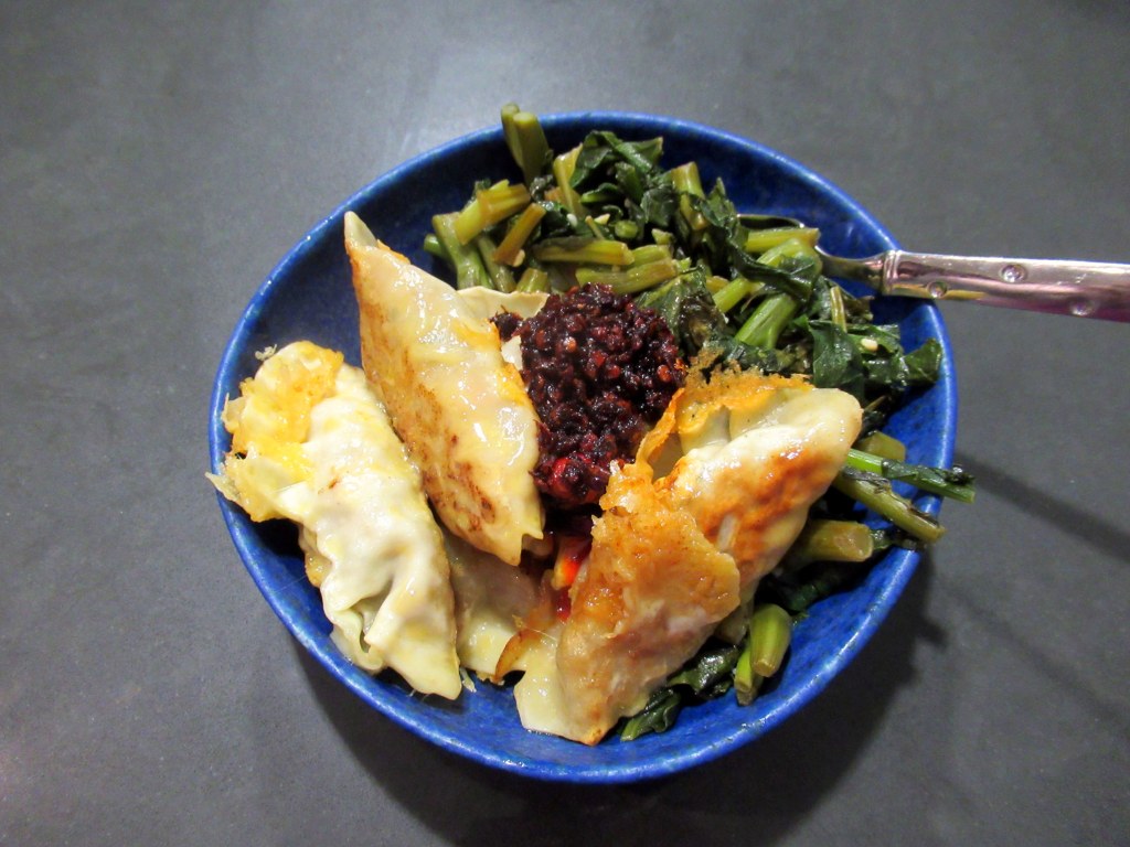Thanksgiving dinner dumplings with local turkey, cranberry herb stuffing, housemade gravy, thyme, and a side of housemade cranberry sauce.