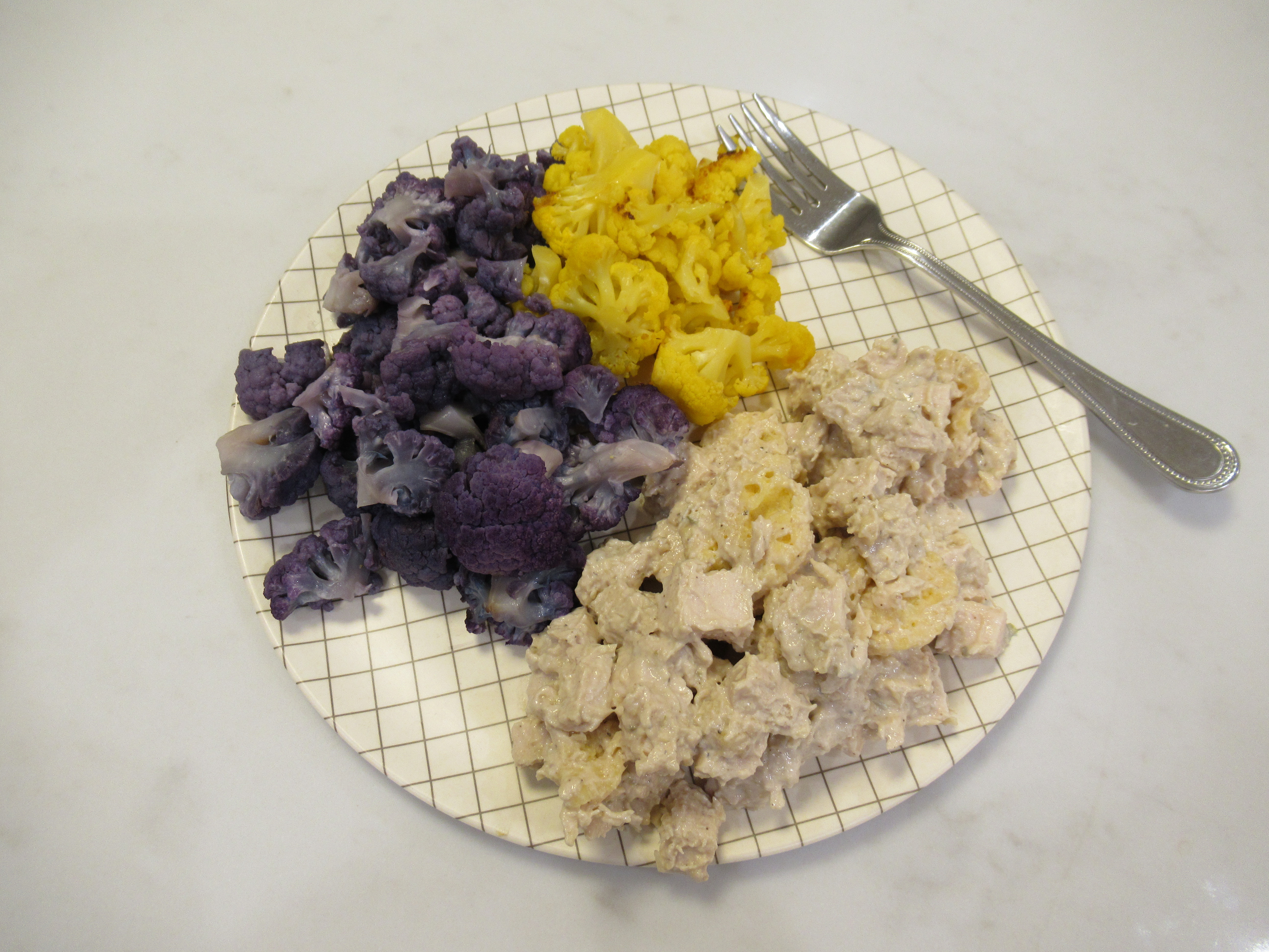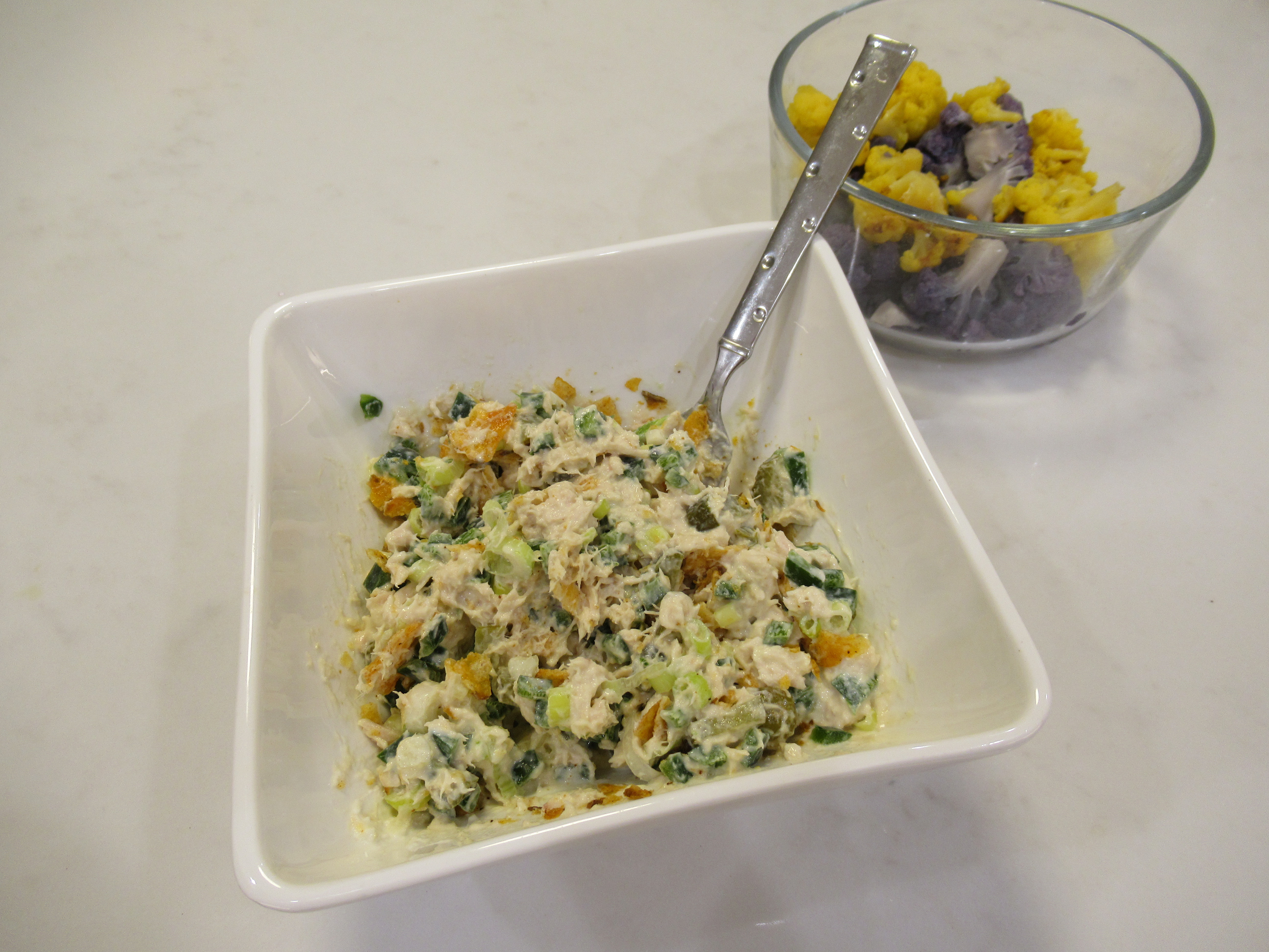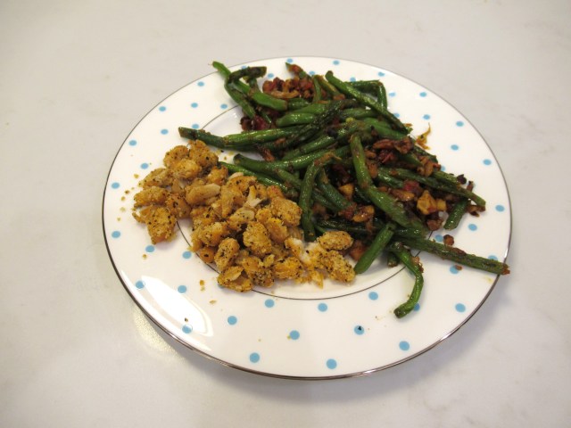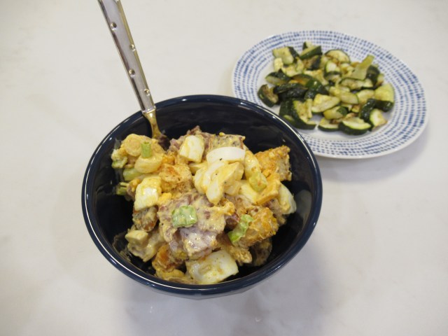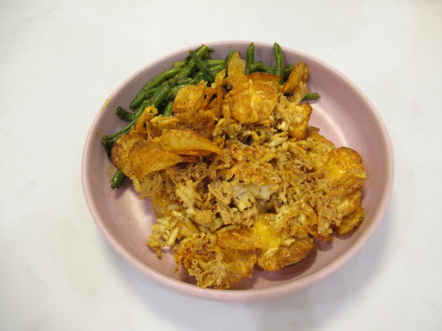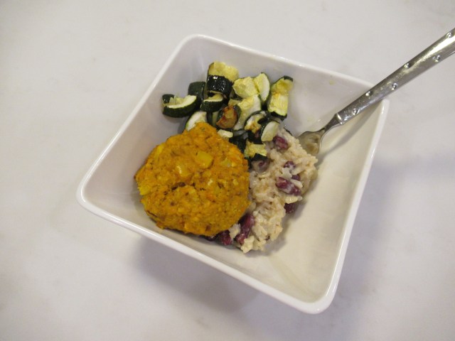 Greek-ish salad. Romaine, Trader Joe’s cilantro dressing, baby tomatoes, roasted zucchini, and roasted chickpeas (baked until crispy with evoo, salt, pepper, sumac, onion powder, and garlic powder). Plus Trader Joe’s dolmas.