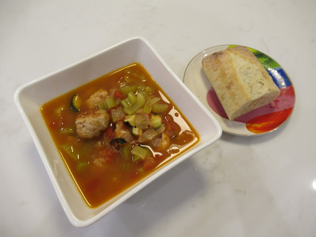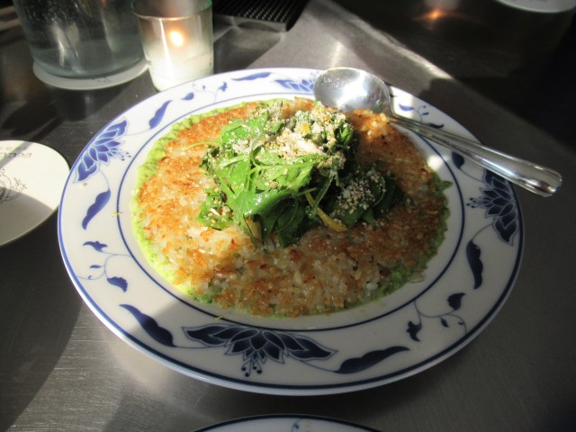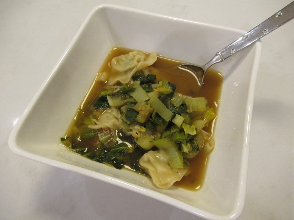 An easy soup. Leftover rice / shredded garlic-y baked chicken / sauteed dinosaur kale, green onion, garlic, and canned green chilis / chicken broth, dark soy sauce, fish sauce, and a little sesame oil.