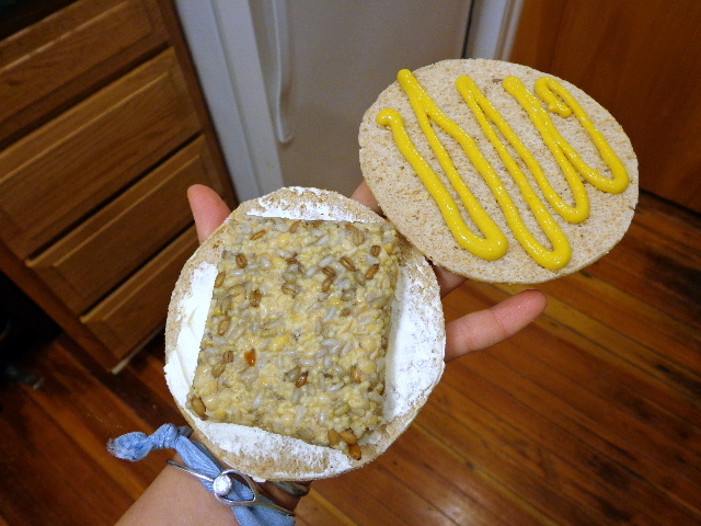 Lunch – A tempeh sandwich with Sriracha Nayo and Strawberry Crofter’s on a Sandwich Thin.