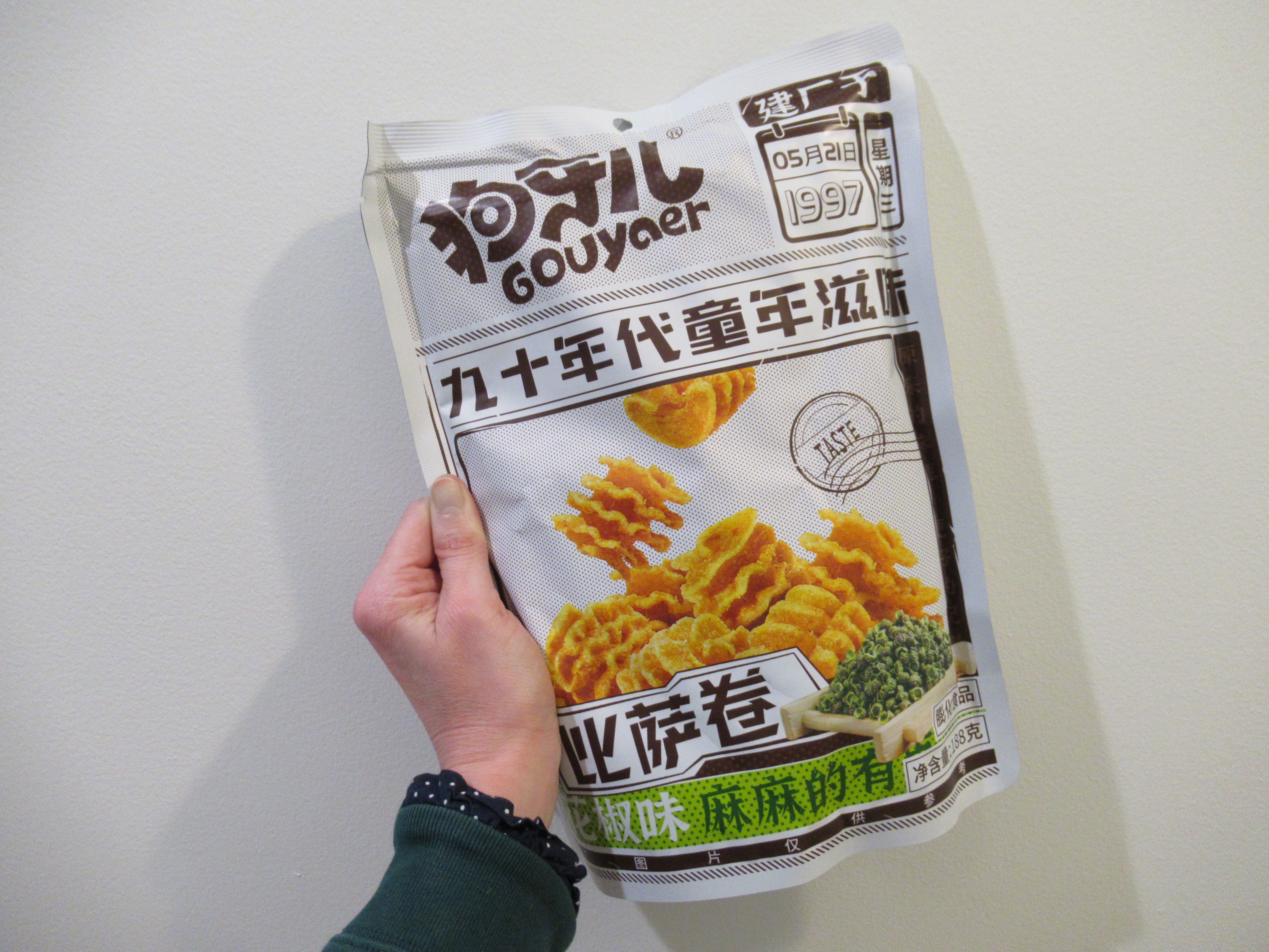 I went to J-Mart for fresh noodles and scored in their amazing snack isle – these Sichuan pepper chips were fantastic.