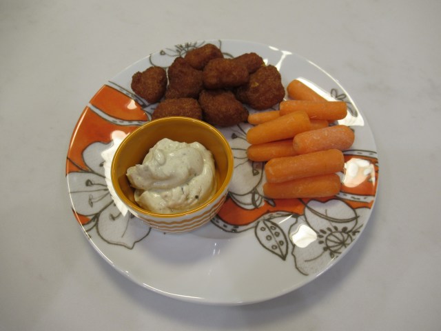 Snack plate – olive oil and za’atar labne, baby carrots, and corn fritters (we got bar food one night!).