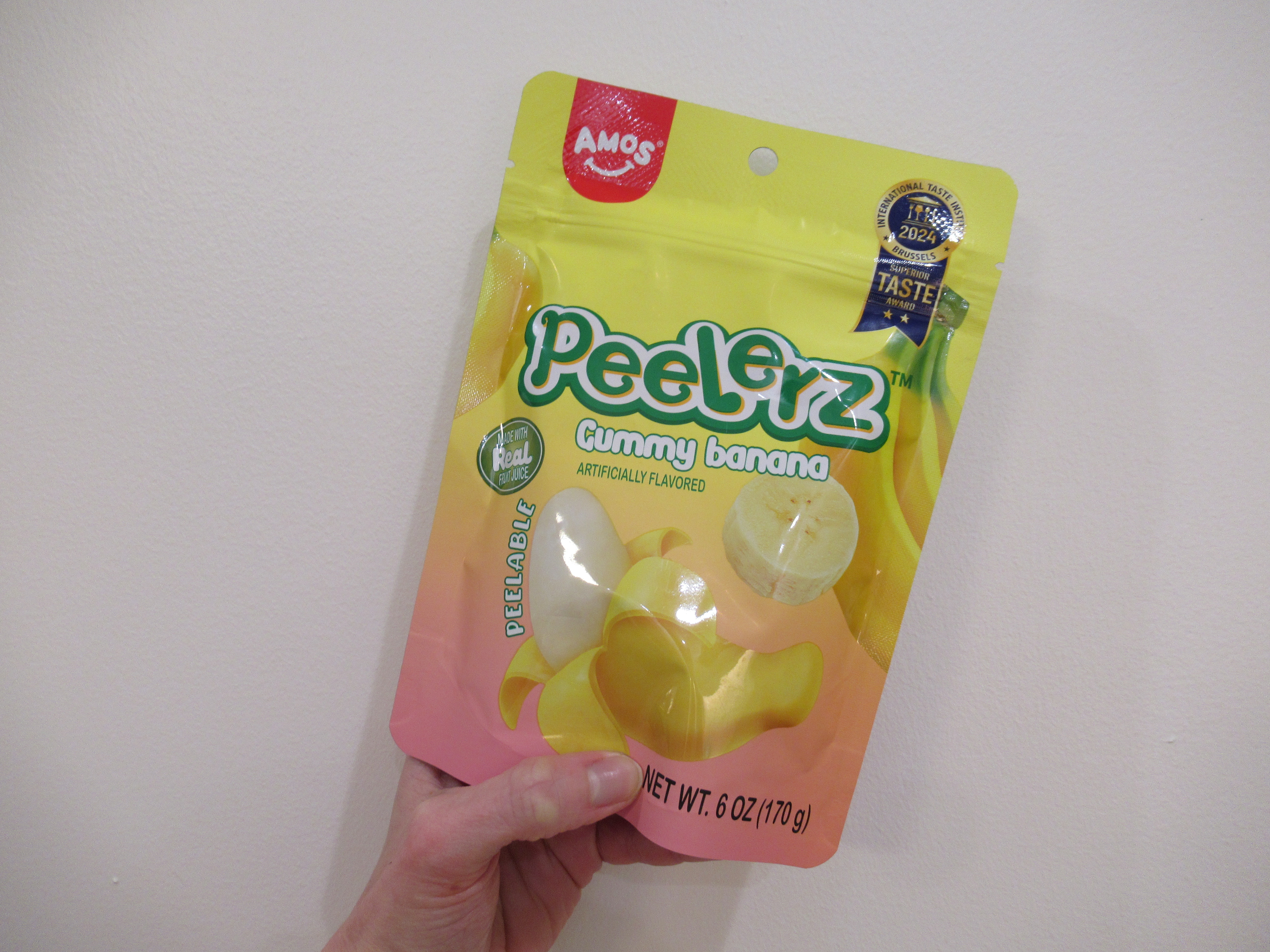 Peelerz peelable gummy banana candy. These were repulsive in a delightful way; the centers were the exact consistency of mushy banana!