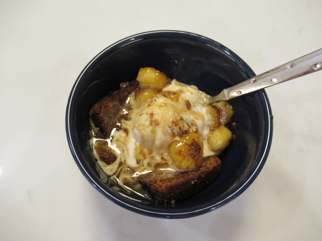 See also – Banana, Banana, Banana sundae — thick-sliced warmed banana bread, scoop of banana ice cream (the vegan Ben & Jerry’s one!), bruléed banana slices.