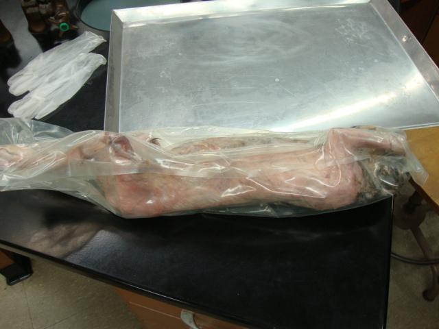 I don’t know what’s up with me, because yesterday I was insanely hungry and today I was hit by fatigue! Again, it was almost indescribable. I felt like I was wading through mud all day long, my mind was cloudy, I was even falling asleep over my dead cat. Yeah that’s right, there was a dead cat. WARNING – there will now be graphic pictures from Anatomy Lab. Cat in a bag.